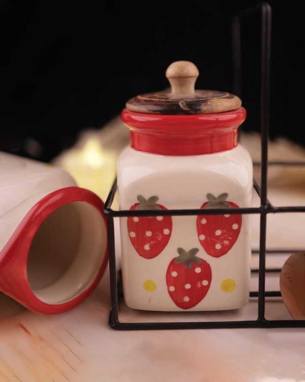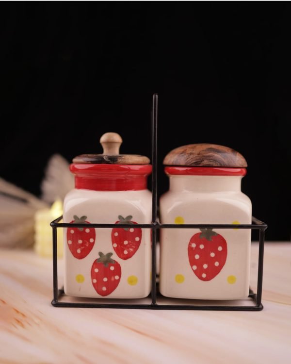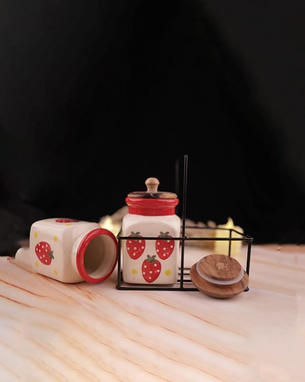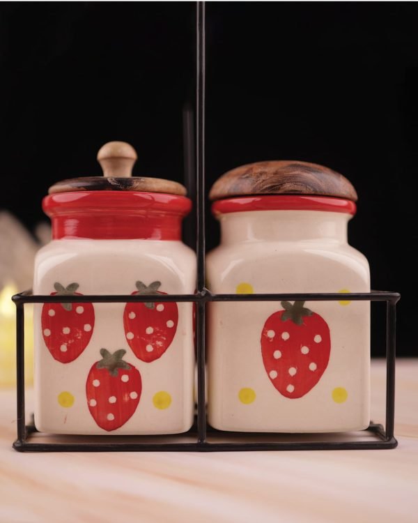 Rustic Jar Set 2 Pcs Strawberry Kitchen Canister